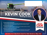 “Kevin Cook is the right candidate to represent the people of Bonneville County in the Idaho State Senate. His remarkable abilities, experience, and commitment to sound principles will make him immediately successful as a legislative leader. I have great respect for Kevin and look forward to him serving us all in the Idaho Senate.”